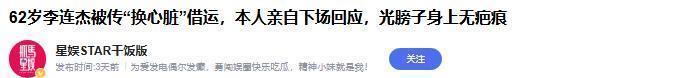 脱光上衣,自证清白如果跳进黄河能洗清谣言,估计黄河的水都被李连杰用完了。网友把李连杰和一位已故武僧联系起来,说花高价把心脏换了换。不知道现在的人是怎么想的,世界上换心脏的人少之又少。